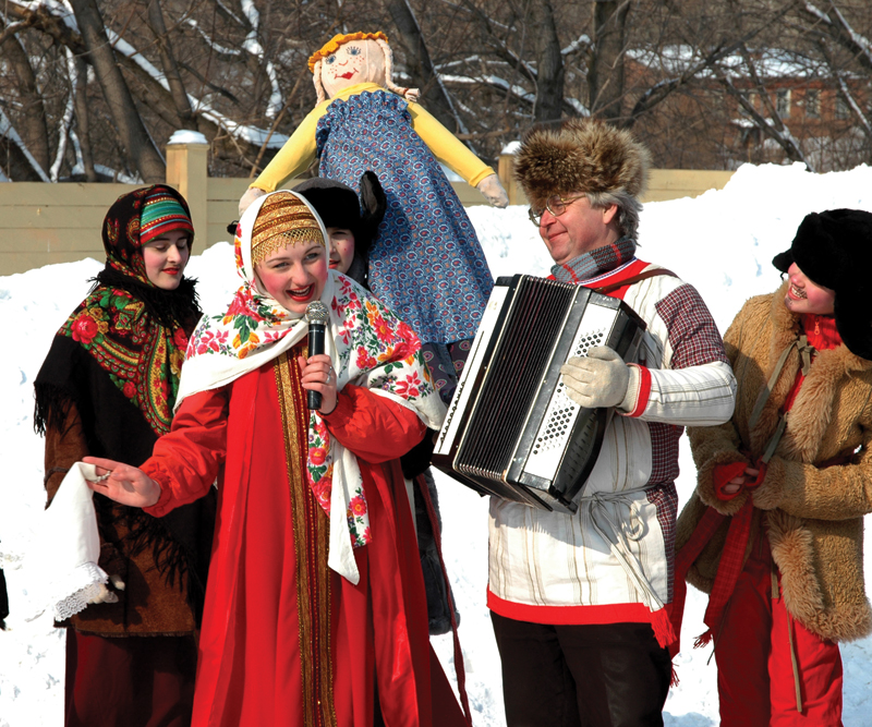 Масленица приходится на ту пору зимы, когда с крыш льёт капель, день увеличивается, а мрак и холод отступают. Её празднуют широко целую неделю. Хозяйки пекут блины, оладьи, пирожки.