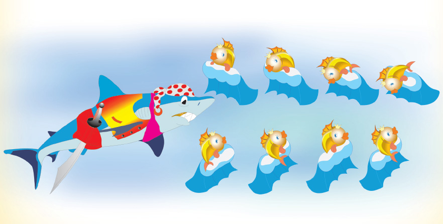 На площадке чертят или вытаптывают две линии на небольшом расстоянии одна от другой. Выбирают ведущего – акулу. Остальные дети (рыбки), разделённые на две команды, становятся лицом друг к другу за противоположными линиями. По сигналу педагога команды одновременно перебегают с одной черты на другую. В это время водящий – акула – старается осалить перебегающих.