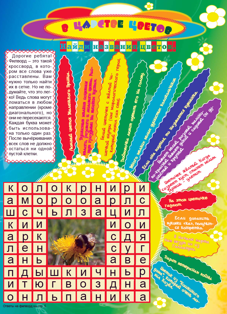 Дорогие ребята! Филворд – это такой кроссворд, в котором все слова уже расставлены. Вам нужно только найти их в сетке. Но не подумайте, что это легко! Ведь слова могут ломаться в любом направлении (кроме диагонального), но они не пересекаются. Каждая буква может быть использована только один раз. После вычёркивания всех слов не должно остаться ни одной пустой клетки.